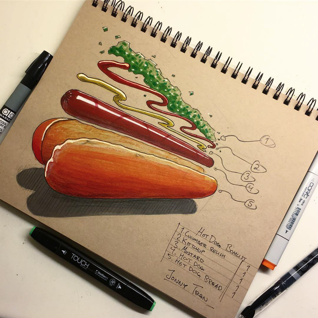 Hot Dog Sketch on Strathmore toned tan paper